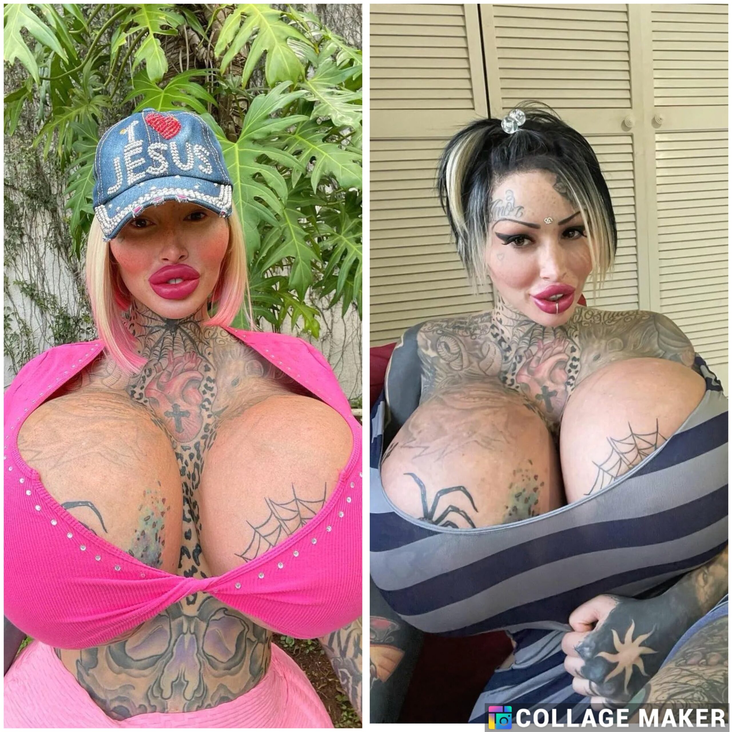 Her transformations were as audacious as they were exhaustive: multiple breast implants culminating in size 38J prosthetics (weighing nearly 11 pounds each, or about 1.5 stone combined); Brazilian butt lifts layered over silicone injections; no fewer than three nose jobs; brow lifts, buccal fat removal, facial and body liposuction; cat-eye surgery; veneers; and fat transfers that sculpted her into a living canvas. She even inked her body head to toe, including eyeball tattoos and a full blackout piece that turned her skin into a psychedelic mural. One of her most infamous procedures? A 2018 filler injection to create what she dubbed the “world’s fattest vagina,” which she reversed after near-fatal complications, including two blood transfusions.