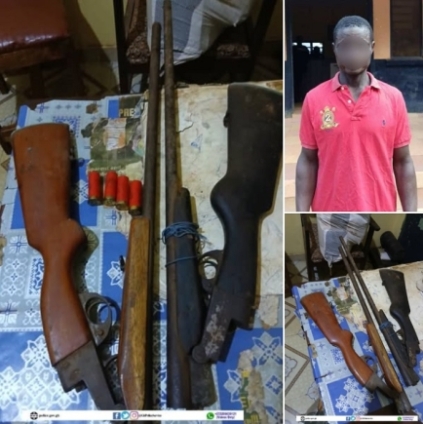 A joint operation by the Ghana Police Service and the Ghana Armed Forces on Friday, August 1, 2025, has led to the arrest of a suspect found in possession of firearms and ammunition in Nkwanta.
